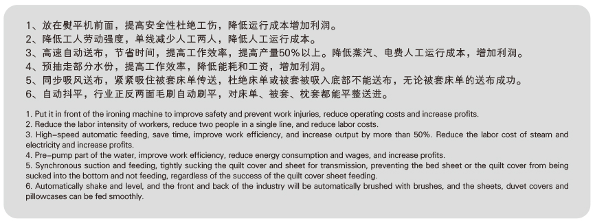 ◎送布調(diào)速可調(diào)節(jié),與熨平速度完美匹配。